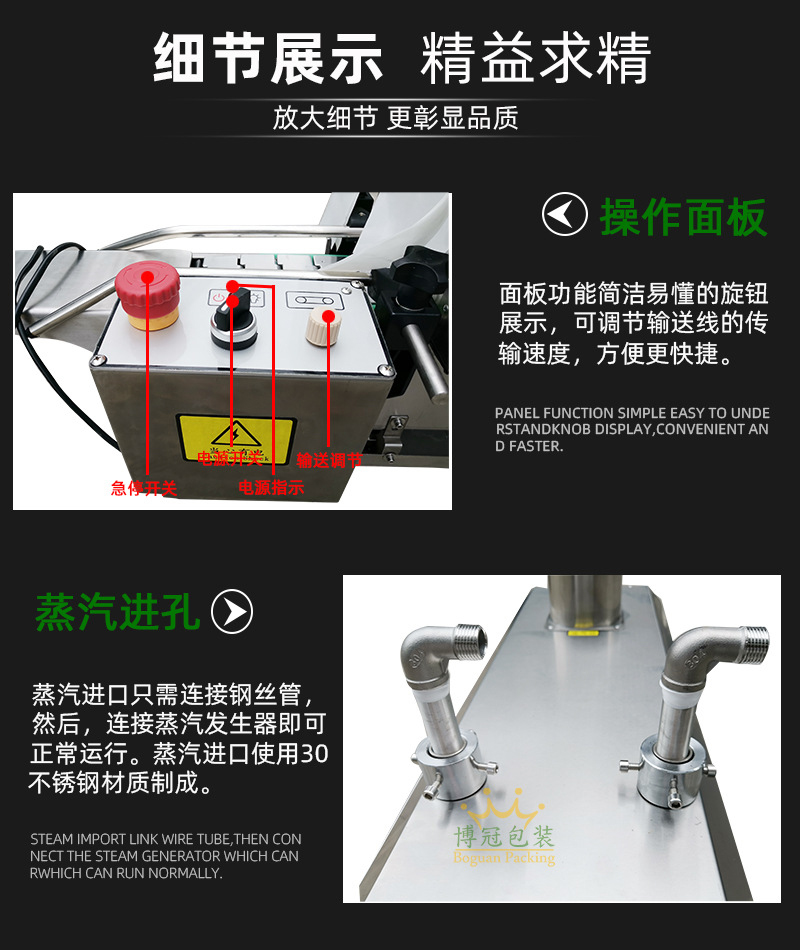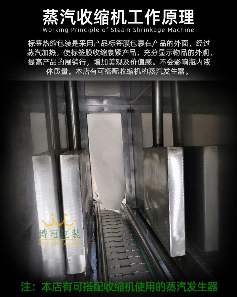 • 在蒸汽發生過程中,通過合理的加熱控制和蒸汽循環利用,可以有效降低能源消耗。部分先進的蒸汽收縮機采用節能型加熱元件和智能控制系統,能夠根據工作負荷自動調整蒸汽產生量,減少能源浪費。而且,相比一些傳統的包裝方式,蒸汽收縮包裝后的產品更加緊湊,在運輸和儲存過程中可以節省空間,間接降低了物流成本。