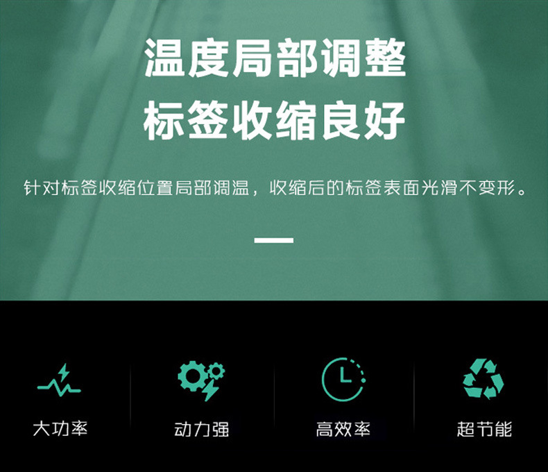 - 標簽膜材質兼容:對常見的標簽膜材質如 PVC、PET、POF 等都有很好的兼容性,能夠根據不同材質的收縮特性進行有效的收縮處理。