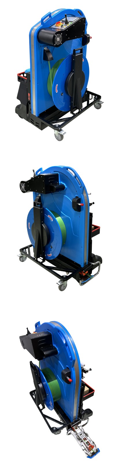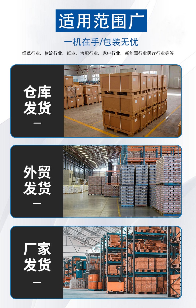 2. 智能收緊:根據貨物類型(如紙箱、金屬件)自動調節束緊力(常規范圍 200-5000N),確保帶子緊貼貨物但不壓損,部分重型機型束緊力可達 9000N 以上,適配建材、鑄件等重物。