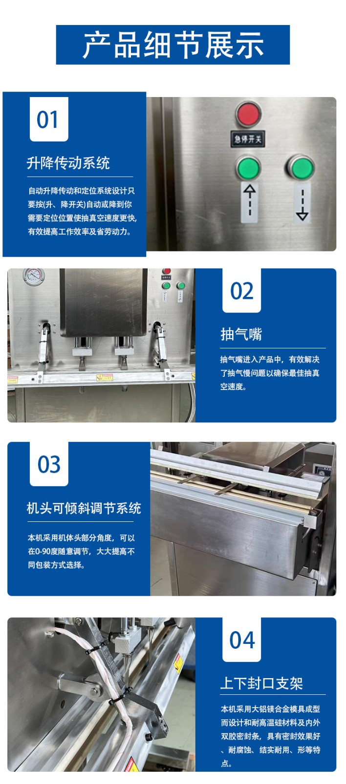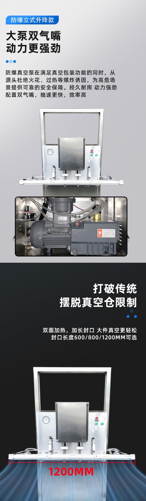 立式防爆真空包裝機(jī)的防爆配置集中在電氣、動力及密封過濾等關(guān)鍵部件,以此適配易燃易爆的特殊工況,其適用工廠也多為存在爆炸隱患的化工、醫(yī)藥等領(lǐng)域,具體如下: