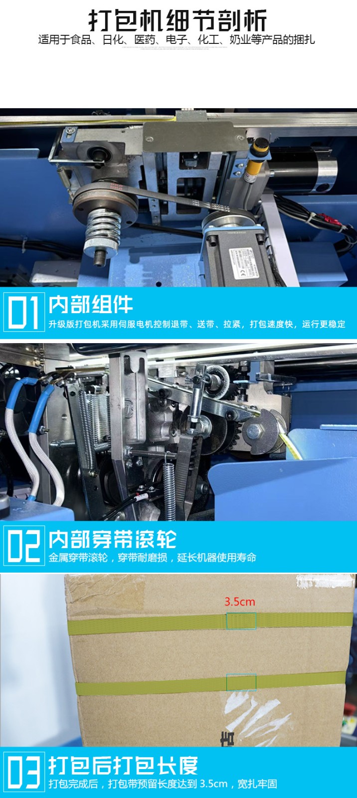 • 伺服打包機的電機運行平穩,機械磨損小,故障率比傳統機型低 30% 以上,且支持長時間連續作業,維護周期更長。