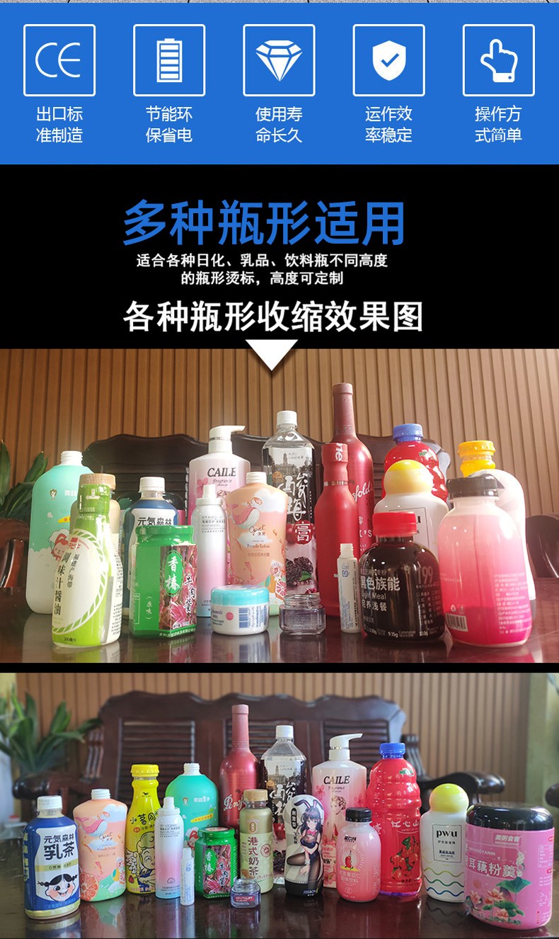 - 適用范圍廣:適用于各種形狀和尺寸的容器,如玻璃瓶、塑料瓶、紙杯等,以及多種材質的標簽膜或收縮膜,如 PVC、PET 等。廣泛應用于食品飲料、化妝品、電子產品、五金工具等多個行業14。