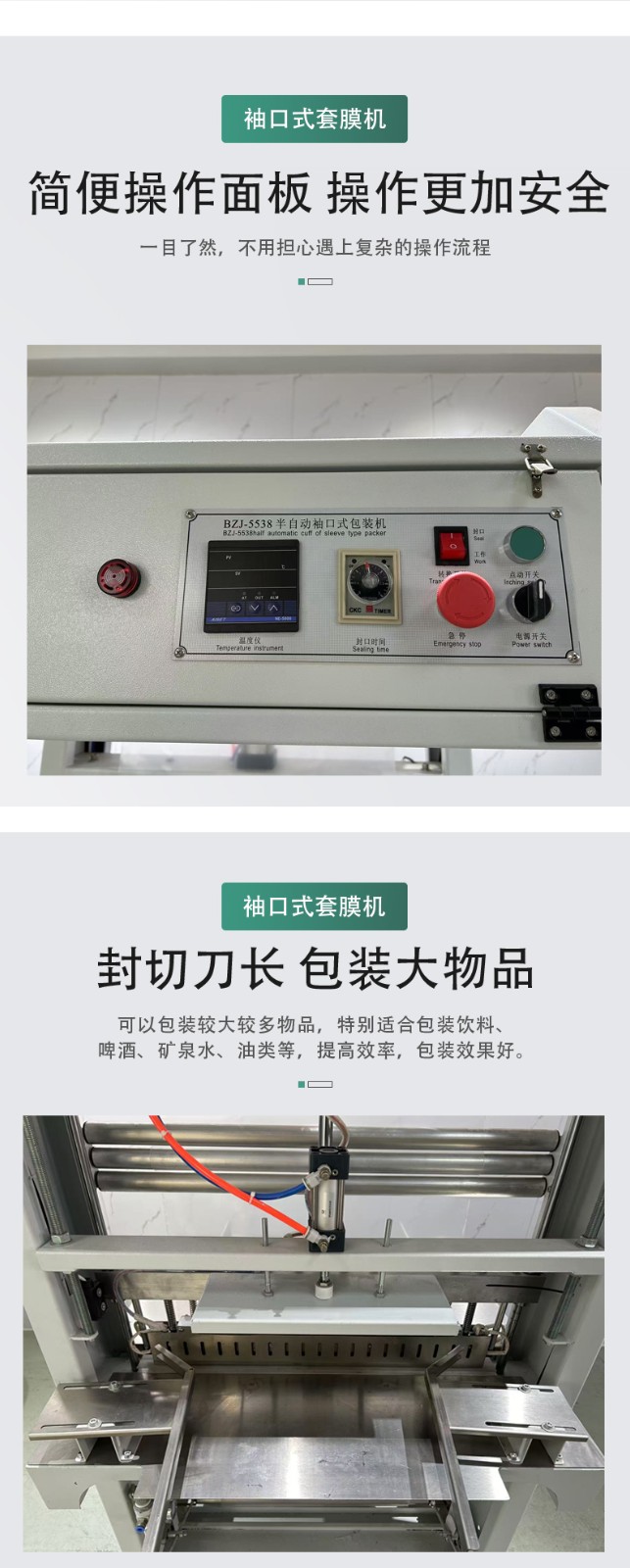 :在包裝封口環節,袖口式包裝機能夠精準地控制封口位置和封口質量。通過先進的封口技術,如熱封或者超聲波封合,封口的牢固程度高,而且封口處整齊、美觀。它可以根據不同的包裝材料和產品尺寸,精確調整封口的溫度、壓力和時間等參數,保證封口的密封性良好,有效防止產品泄漏、受潮或受到外界污染。
