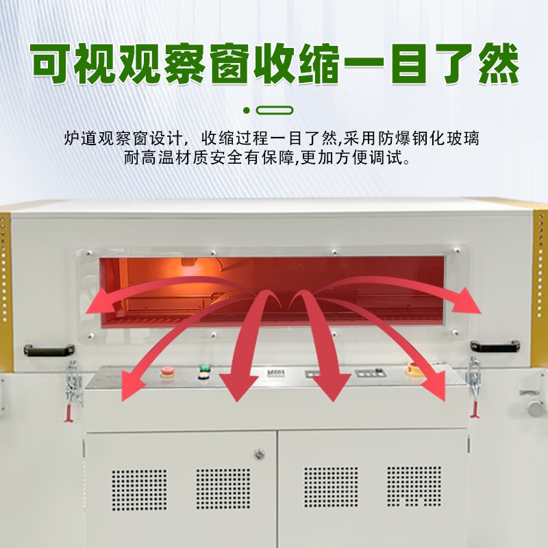 - 可視窗設計:設備設有可視窗,能夠讓操作人員清晰地觀察到收縮過程,便于及時發現和調整包裝過程中出現的問題,確保包裝質量。